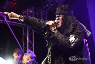 „Foto des Monats Juni“ Eine Konzertaufnahme des Sängers Chris Pohl der Band BLUTENGEL Wasserschloss Klaffenbach bei Chemnitz im Juni 2023.