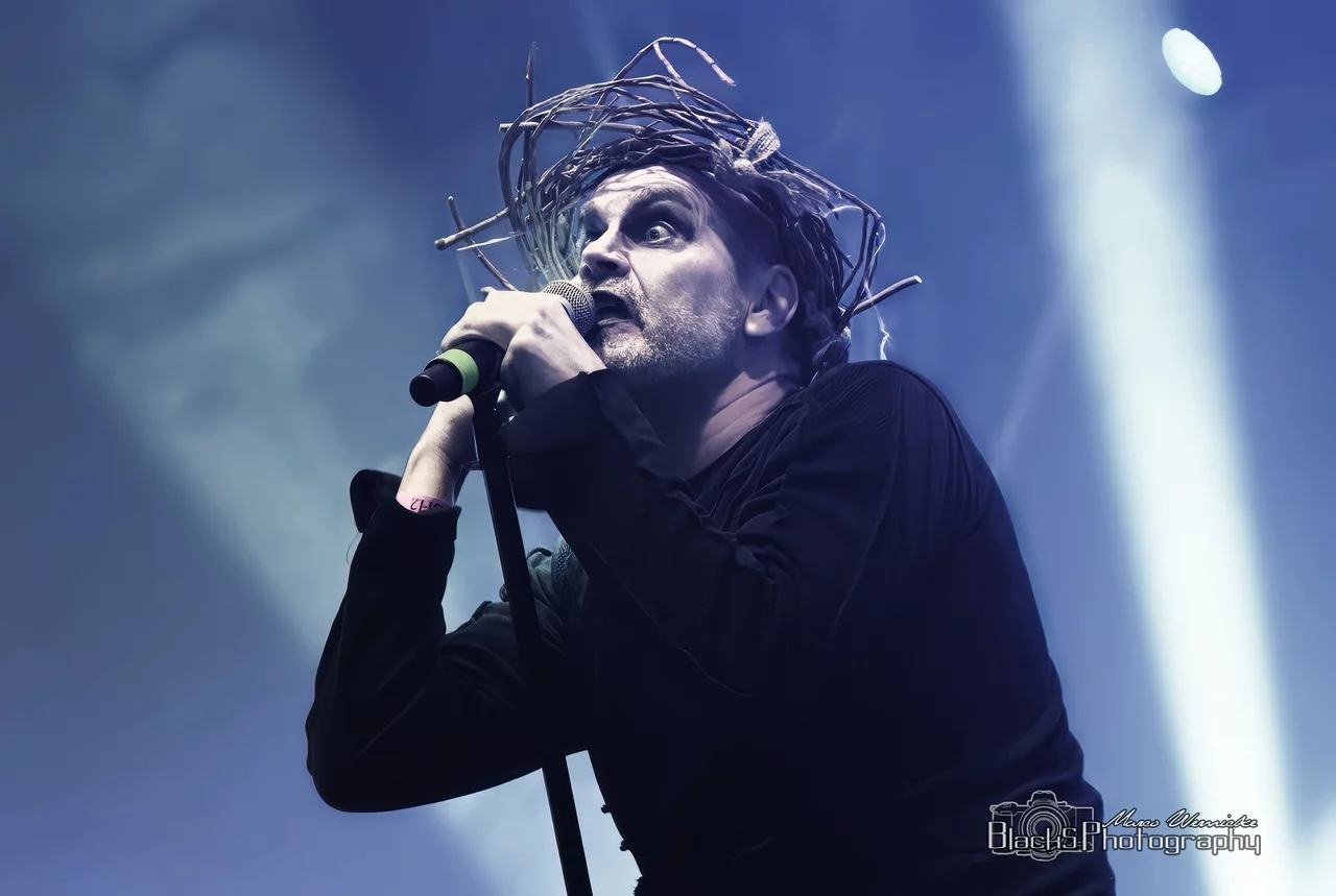 „Foto des Monats Juni“ Eine Konzertaufnahme des Sängers Chris Pohl der Band BLUTENGEL Wasserschloss Klaffenbach bei Chemnitz im Juni 2023.